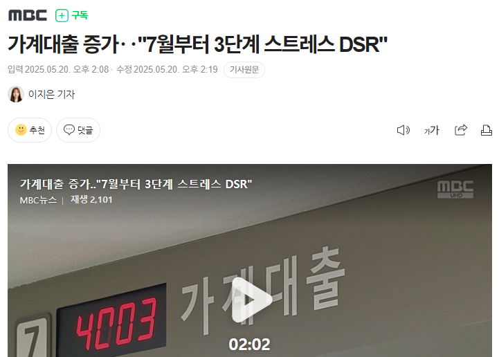 현재는 2단계 스트레스 DSR을 적용하고 있는데요, 2025년 7월 1일부터는 스트레스 DSR 3단계로 격상한다고 합니다. 이제는 주담대+신용대출 뿐만 아니라 모든 대출에 대해서 DSR계산에 적용하고, 기본 스트레스 금리의 100%를 적용하니, 정말로 대출을 받기가 어려워지겠네요.