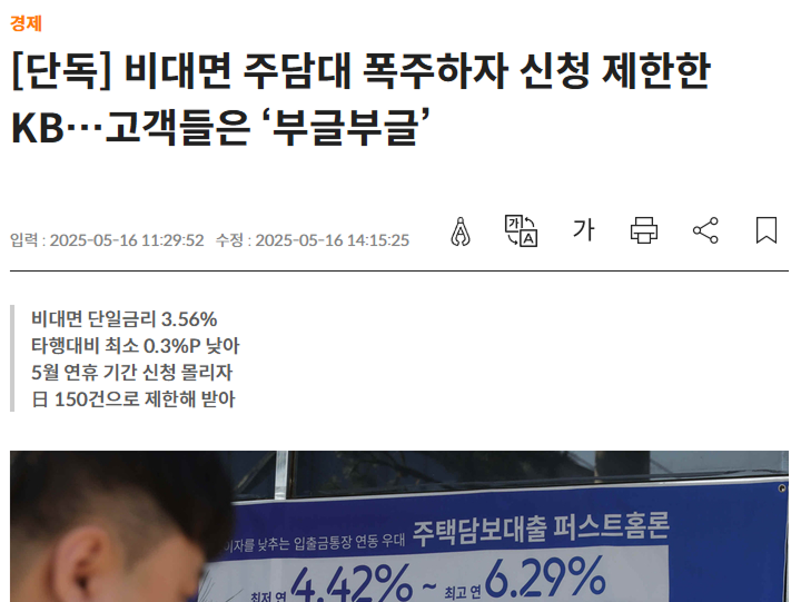 KB, 가장 낮은 금리로 비대면 주담대 출시하자, 신청자 몰려 – 세상의 모든 경제 이야기