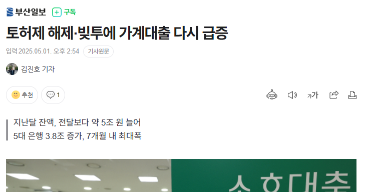 어찌됐든 토허제 지역은 수요가 많은 지역인데, 허가를 막음으로 공급이 줄어드니 가격은 상승하고, 우리의 급여는 오르지 않았으니 대출이 증가하게 되는 것이죠