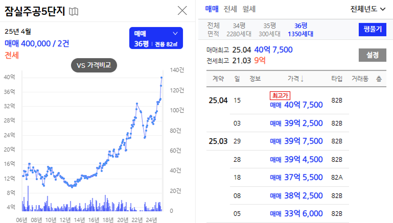 잠실주공 5단지 36평(82.61m²)이 처음으로 40억을 넘어 화제입니다. 39억에 들어선 지 한 달이 채 되지 않았는데도 말이죠. 오늘은 토지거래허가제에 묶여있는데도, 이 지역의 부동산 가격은 치솟고 있는지에 대해서 알아보고자 합니다.